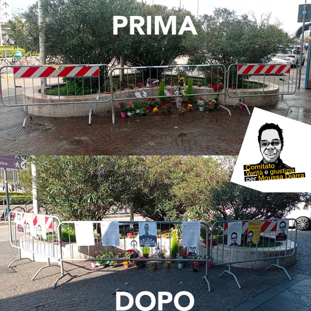La denuncia del Comitato: “Vandalizzato in stazione a Verona Porta Nuova il presidio che ricorda il giovane Moussa Diarra”.
