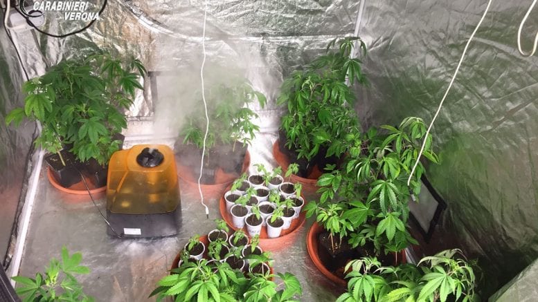 Ogni camera, tranne quella da letto in cui abitavano i due italiani, classe ’91 e ’61, era adibita a serra per la coltivazione, produzione e stoccaggio di chili e chili di marijuana. Più precisamente sono stati rinvenuti dai militari: 52,5 chili circa di infiorescenze, foglie e resine di marijuana in fase di essiccazione o congelate; oltre 700 grammi di marijuana pronta per la vendita; 103 piante di marijuana, di altezza variabile (dai 10 ai 90 cm); diversi bilancini e materiale atto al confezionamento e stoccaggio dello stupefacente; 50 ventilatori elettrici; 5 filtri aria con relative tubazioni; 16 lampade di vario tipo per riscaldare l’ambiente e favorire la crescita delle piante; 1 deumidificatore e 1 umidificatore; temporizzatori e termometri; 1 rilevatore di ph/ acidità; numerose taniche e flaconi di fertilizzanti; 6 tende di colore nero con relative aste di montaggio, per la realizzazione della serra.