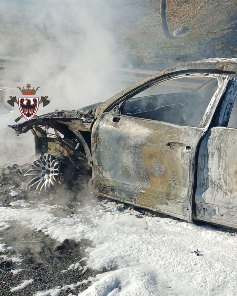 Auto in fiamme sull’autostrada A22, tra Avio e Affi: l’incendio ha distrutto una Porsche condotta da un uomo di 81 anni.