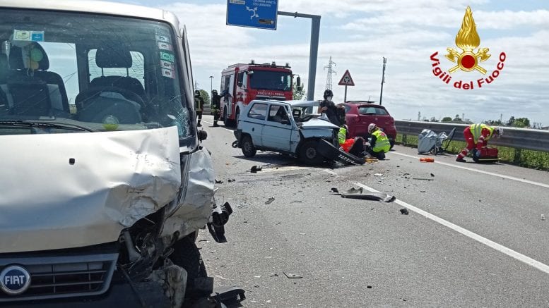 Assistiti dai sanitari anche la coppia all’interno del furgone e la giovane conducente dell’Alfa Romeo Mito, pure loro trasferiti in ambulanza in ospedale a Vicenza. I carabinieri di Lonigo hanno deviato il traffico ed eseguito i rilievi del sinistro. Le operazioni di soccorso dei vigili del fuoco sono terminate dopo circa 3 ore.