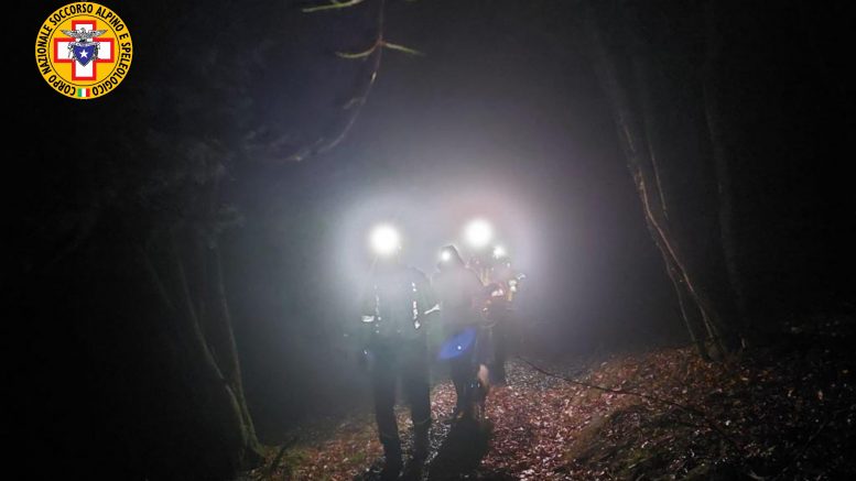 Coppia persa nella notte con i cani in fondo al Vajo dell’Orsa, sul monte Baldo.