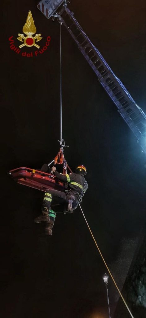 Arrivati sul posto i vigili del fuoco, intervenuti con 2 mezzi, tra cui un’autoscala, hanno individuato la donna in mezzo alla vegetazione assieme ad un operatore del 118 che le stava prestando le prime cure grazie ad un passaggio posto a monte. Gli operatori Saf (Speleo Alpino Fluviali) si sono immediatamente calati raggiungendola.