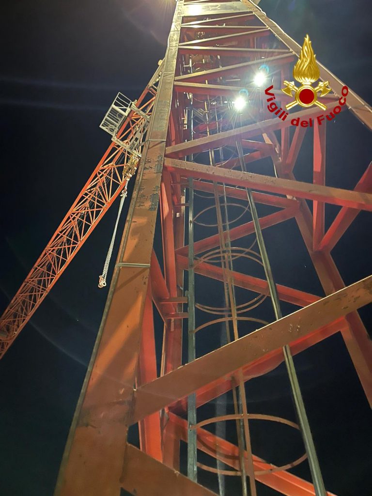 L’uomo invece si è portato sulla punta estrema del braccio della gru. I vigili del fuoco arrivati con il personale di prima partenza e con il personale SAF (speleo alpino fluviali) una volta appurato che non si trattava di un tentato suicidio, hanno predisposto il recupero dell’uomo. Il giovane era nel frattempo in contatto telefonico con il personale del 118. Due operatori SAF esperti, hanno raggiunto il giovane mettendolo in sicurezza e iniziando cosi il percorso a ritroso, prima del braccio laterale e poi del traliccio. L’uomo senza nessuna ferita e in ottime condizioni fisiche, dopo un controllo sanitario è stato preso in consegna dai carabinieri. Le operazioni di soccorso dei vigili del fuoco sono terminate alle 4 circa.