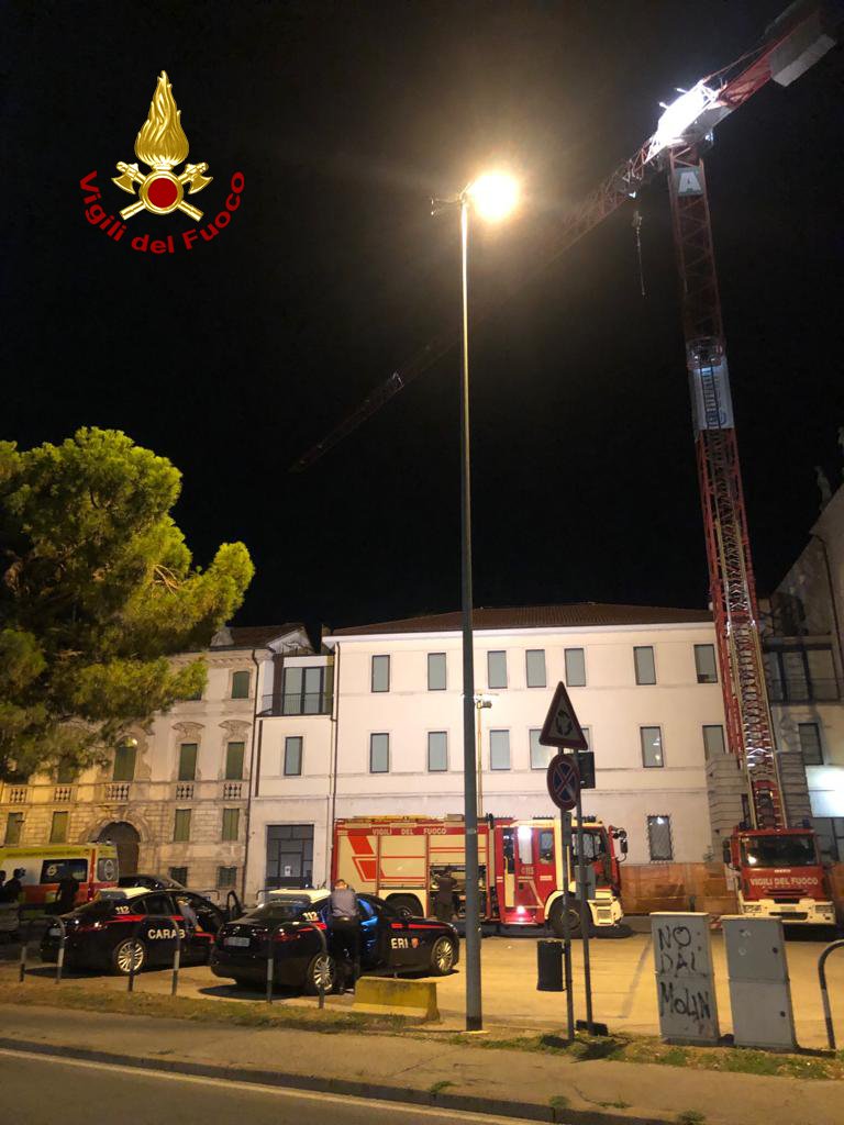 E così la notte tra martedì e mercoledì, poco dopo la mezzanotte, i vigili del fuoco sono intervenuti, nel centro storico di Vicenza, in piazza Matteotti, per soccorrere un giovane salito sul braccio laterale della gru edile a circa 50 metri di altezza per fare delle foto. Il 27enne che pratica parkour era stato visto sulla gru a servizio per i lavori del museo di palazzo Chiericati dai carabinieri, che l’avevano invitato a scendere.