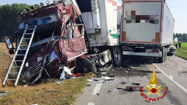 Scontro tra due tir nella tarda mattinata di oggi, mercoledì 11 ottobre, lungo la provinciale 21. Coinvolta anche un’auto che transitava in quel momento. L’incidente, secondo le prime informazioni, è avvenuto poco prima di mezzogiorno all’altezza di Villafontana.