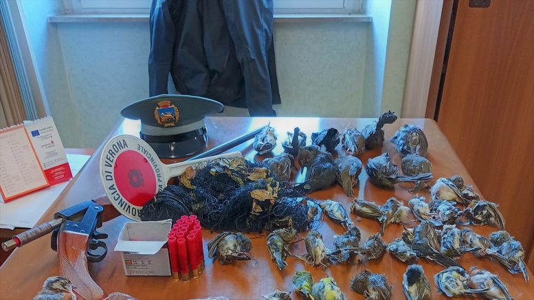 Nel capannone gli agenti hanno trovato alcuni bossoli e cartucce e una seconda rete da uccellagione. In casa, invece, decine le prede detenute dall’uomo: molte appartenenti a specie protette e particolarmente protette e, tra queste, capinere, pettirossi e cinciarelle. Alcune già spiumate, altre ancora integre e presumibilmente abbattute recentemente.