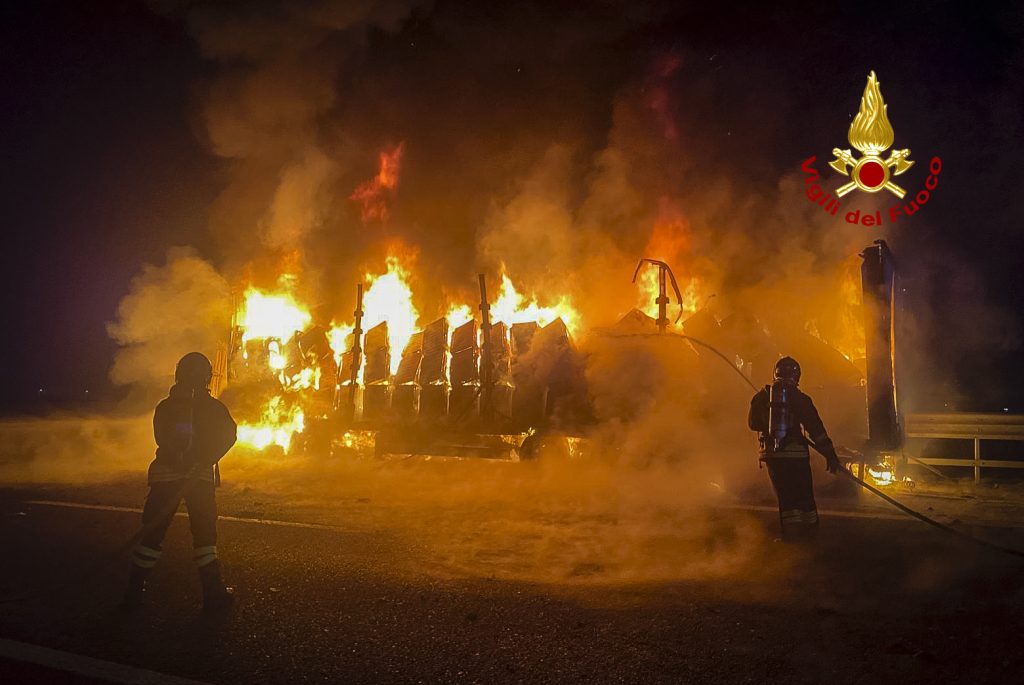 L’autista, un cittadino rumeno, stava percorrendo l’autostrada quando ha notato del fumo, ha accostato ed è sceso, proprio mentre l’autoarticolato diventava un tizzone ardente, dopo aver preso fuoco. I vigili del fuoco arrivati dalla centrale con un’autopompa, due autobotti e nove operatori, hanno portato a compimento le operazioni di spegnimento del mezzo completamente avvolto dalle fiamme. Nessun ferito, fortunatamente, nemmeno l’autista del camion, sceso in tempo dalla cabina di guida.