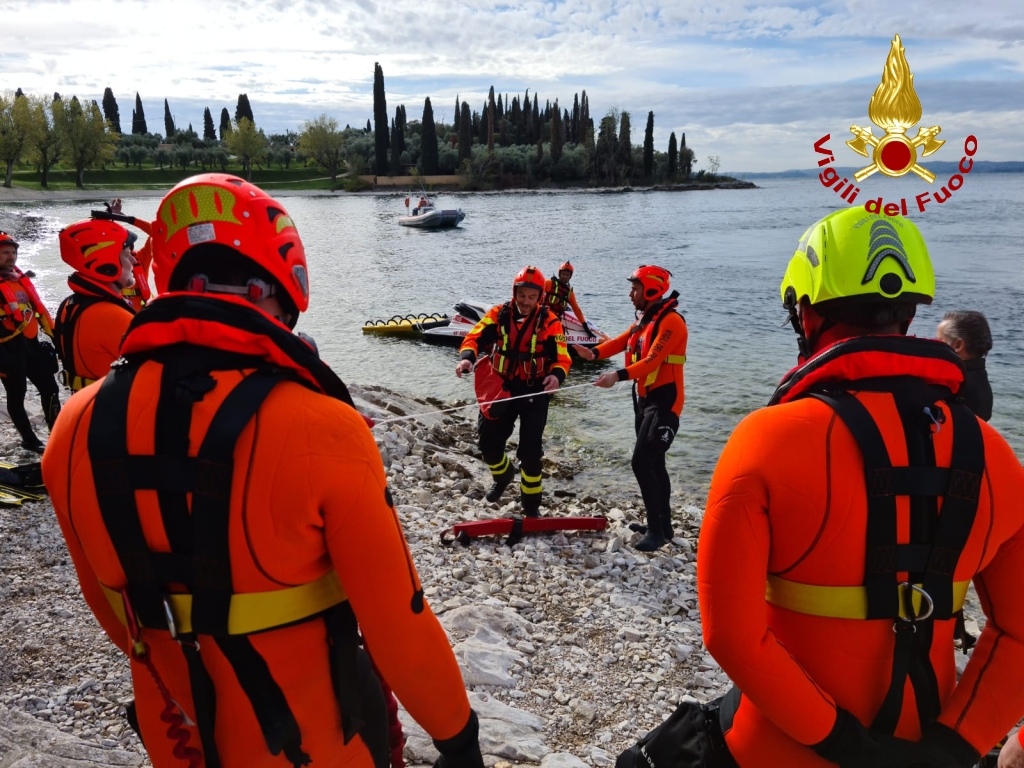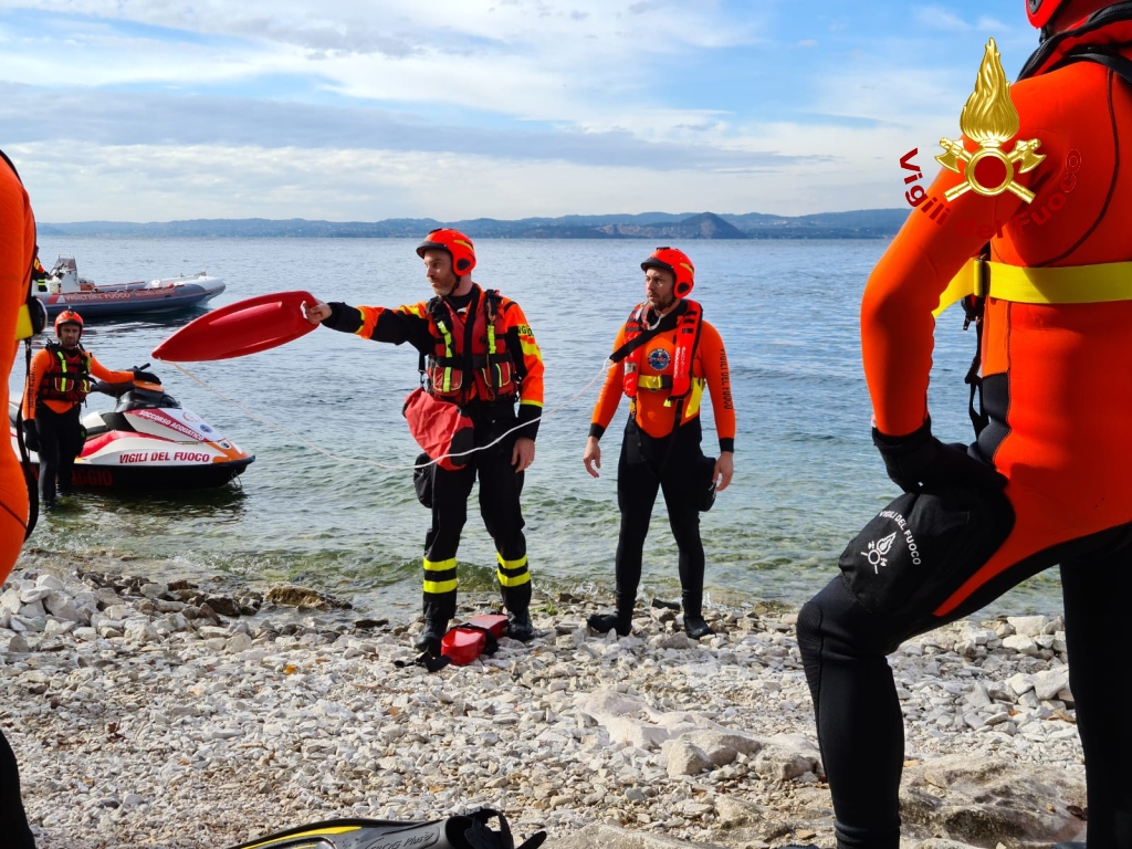 Spettacolare esercitazione dei vigili del fuoco sulla sponda veronese del lago di Garda: una cinquantina di vigili del fuoco in azione per il mantenimento biennale delle procedure operative di soccorso acquatico. A partecipare ai 4 giorni di addestramento nella cornice di Punta San Vigilio, a Bardolino, unità provenienti dai tutti i comandi del Veneto e del Friuli Venezia Giulia.
