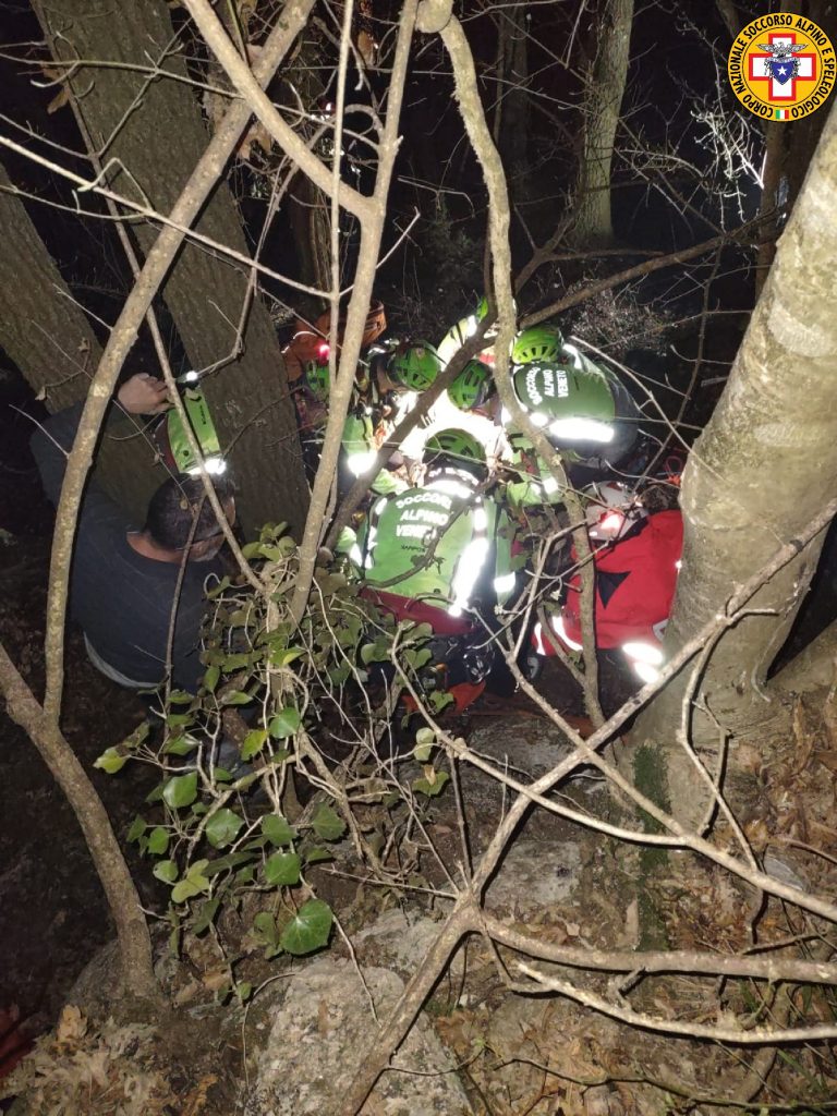 Sette soccorritori, più un settimo del Soccorso speleologico che abita nelle vicinanze, hanno raggiunto il luogo dell’incidente, una cinquantina di metri sopra la strada, dove si trovava già il personale medico dell’ambulanza di Verona emergenza, che aveva prestato le prime cure. Stabilizzato e caricato sulla barella portantina, l’infortunato è stato calato fino alla strada e affidato all’ambulanza. L’intervento si è concluso verso l’una di notte.