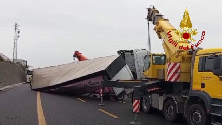 Incidente in autostrada A4, tir si ribalta: traffico in tilt.
