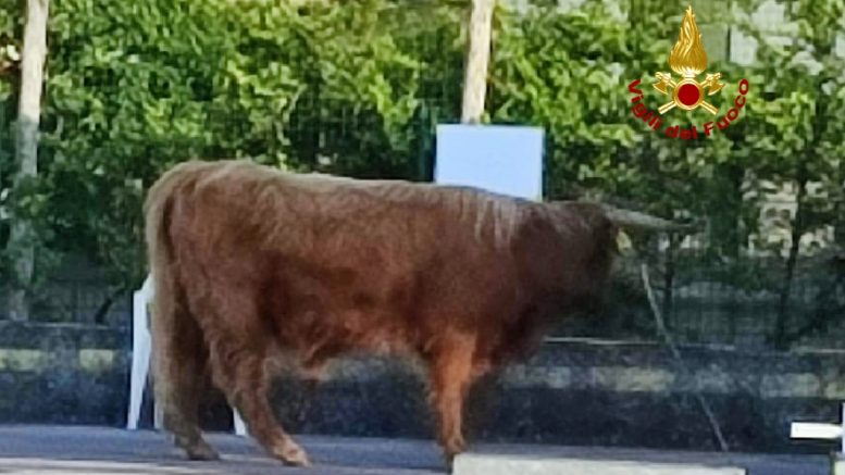 L’animale, un toro razza Limousine, era fuggito dal proprio pascolo e scorrazzava libero lungo la via. I pompieri, giunti dal distaccamento di Bardolino intercettavano l’animale all’interno dell’area di servizio Eni, nelle vicinanze del luogo da dove era fuggito.