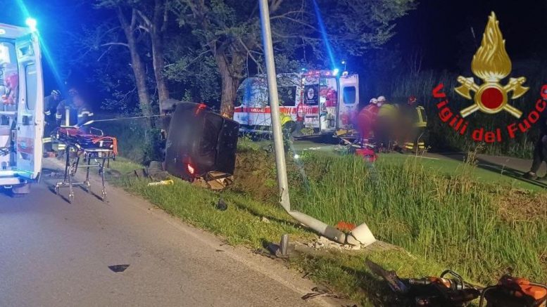 Tragedia a Sirmione: morto un 32enne di Peschiera schiantato contro un albero, sei i feriti.