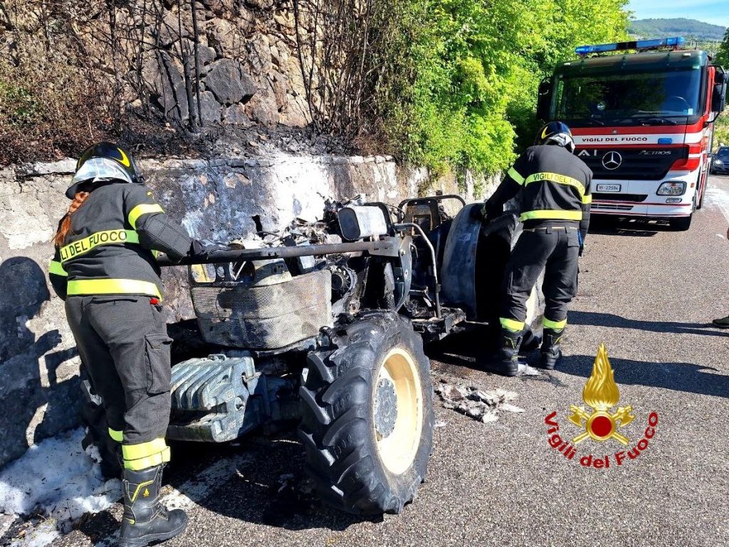 L’autista, mentre percorreva la provinciale 34, si è accorto che qualcosa non andava, ha accostato ed è sceso per sganciare il rimorchio mentre il trattore agricolo iniziava ad andare a fuoco. I vigili del fuoco, giunti da Verona con un autopompa e 5 operatori, hanno lavorato, utilizzando del liquido schiumogeno, per spegnere le fiamme che avevano completamente avvolto il mezzo.