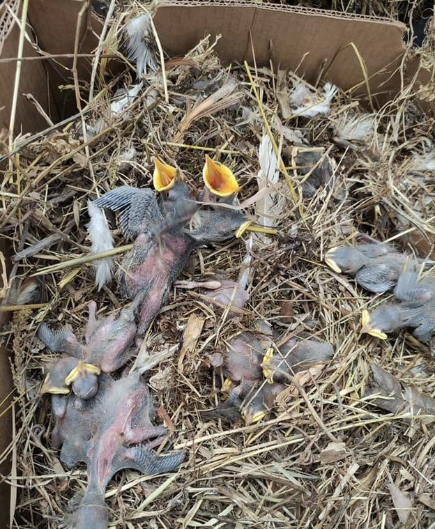 Verona, nidiata di uccellini gettati nella spazzatura a Borgo Venezia.