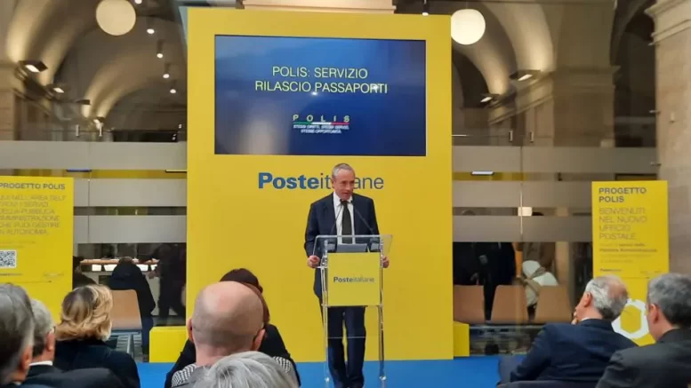 Il progetto Polis di Poste Italiane procede a passi sempre più spediti, con il lancio del nuovo servizio di richiesta e rinnovo passaporto negli uffici postali dei Comuni al di sotto di 15 mila abitanti. La novità, che parte in via sperimentale in provincia di Bologna, a San Pietro in Casale e Toscanella (frazione di Dozza), in vista della progressiva estensione a tutto il territorio nazionale, è stata presentata all’ufficio postale di piazza San Silvestro a Roma alla presenza del ministro dell’Interno, Matteo Piantedosi, della presidente di Poste Italiane, Silvia Maria Rovere, dell’Ad di Poste Italiane, Matteo Del Fante, e del direttore generale, Giuseppe Lasco.