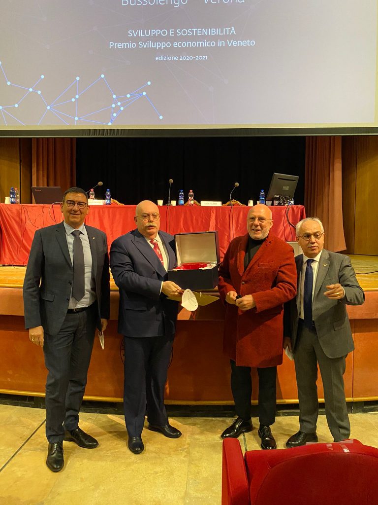 Baldo, assieme al presidente di Unioncamere del Veneto, Mario Pozza, ha consegnato il premio a Luigi Mion, accompagnato dal sindaco Roberto Brizzi di Bussolengo, dove ha sede il gruppo (nella foto allegata, da sinistra, Brizzi, Baldo, Mion e Pozza).