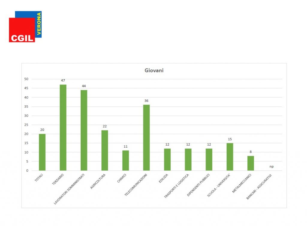 L’indagine Cgil mostra come il lavoro povero non si distribuisca equamente tra i diversi settori dell’economia veronese: dilaga nel terziario, dove sono “poveri” il 43% dei lavoratori, ed è fortemente presente nel settore agricolo (19%) e in quello delle telecomunicazioni (16%). Anche il 37% dei lavoratori somministrati sono “poveri”. Molto meno coinvolti dal fenomeno (sotto al 10%) il settore bancario e assicurativo, la metalmeccanica, la scuola e (anche grazie al grande lavoro fatto dal Sindacato negli ultimi anni) l’edilizia e il settore dei trasporti e della logistica.