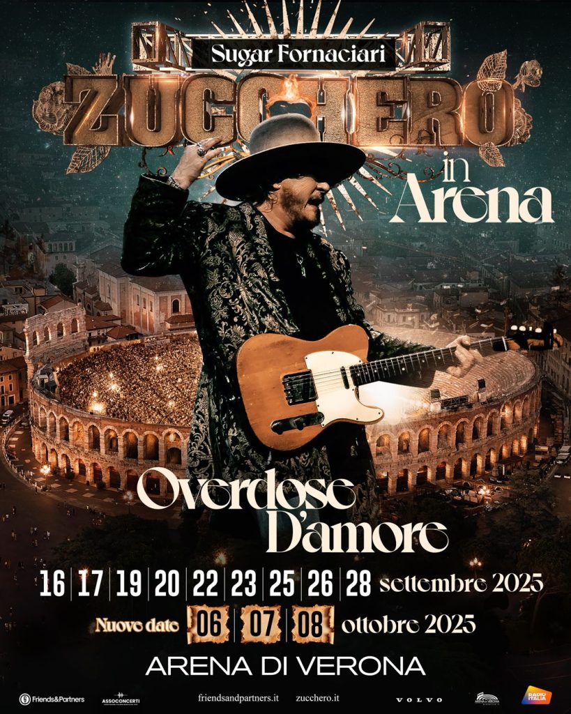 Zucchero continua a collezionare record su record all’Arena di Verona, consolidando un legame unico con uno dei palcoscenici più ambiti al mondo. Con oltre 600 mila spettatori arrivati da ogni angolo del pianeta per i suoi 54 show tenuti ad oggi nella prestigiosa cornice veneta, è stato il primo artista a esibirsi per 22 serate in un solo anno (da settembre 2016 a settembre 2017) e detiene il primato di artista con 14 concerti consecutivi (tra aprile e maggio 2022).