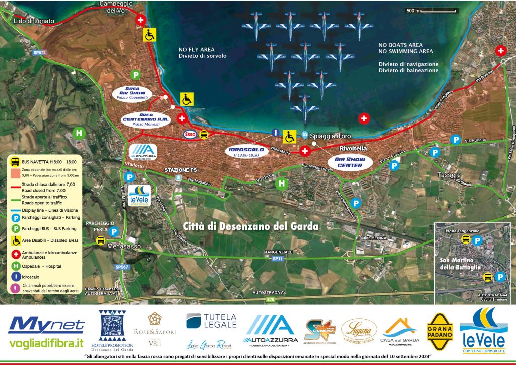 L’evento è gratuito. L’area rossa sarà resa pedonale dopo le ore 9 e le strade in rosso saranno destinate al solo passaggio pedonale e ad eventuali mezzi di soccorso sin dal mattino presto. Le strade in verde consentiranno di raggiungere i parcheggi e saranno aperte alla circolazione del traffico esterno. Eccezioni saranno fatte per mezzi militari, mezzi autorizzati e residenti. I grandi parcheggi sono stati adibiti con distanze medie di 500 metri dalle spiagge. Divieto di navigazione e sorvolo durante l’Airshow dalle ore 10,00.