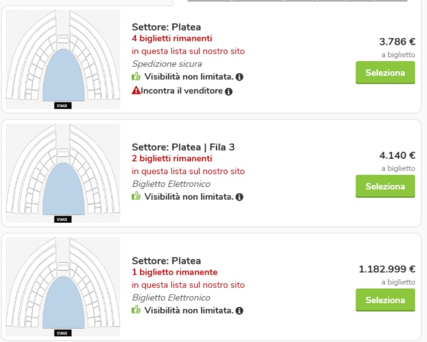 “I biglietti per il concerto dei Maneskin all’Arena sono andati letteralmente a ruba sui canali ufficiali di vendita, per comparire in queste ore sui siti di secondary ticketing a prezzi astronomici – denuncia il presidente Carlo Rienzi – Alcune piattaforme stanno proponendo al pubblico biglietti con tariffe che vanno dai 4mila euro fino al record di 1.182.999 euro per un posto in prima fila davanti al palco. Un rincaro astronomico, se si considera che sui canali ufficiali di vendita il prezzo massimo di un biglietto era di 86,25 euro”.