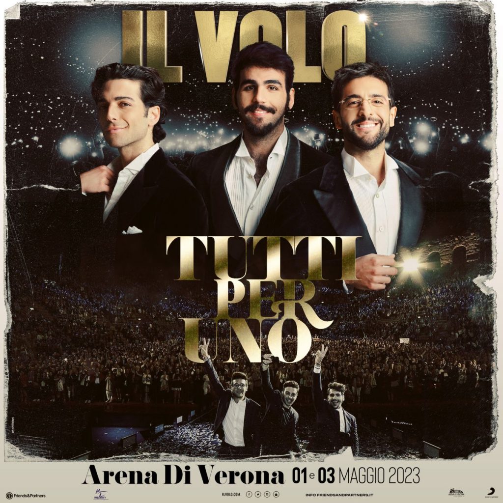 L’appuntamento nell’anfiteatro è da anni una delle tappe irrinunciabili per Il Volo e più attese dai suoi fan. L’atmosfera da sogno che l’Arena di Verona regala è la perfetta cornice per le tre inconfondibili voci di Piero Barone, Gianluca Ginoble e Ignazio Boschetto.