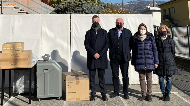 “Con questa donazione, frutto del contributo concesso dal Fondo dei Comuni di Confine, abbiamo voluto far sentire la nostra vicinanza alla scuola e agli studenti che mai, come in questi ultimi due anni causa Covid, hanno dovuto far fronte a tante esigenze e modifiche logistiche e didattiche.”, ha dichiarato il sindaco.