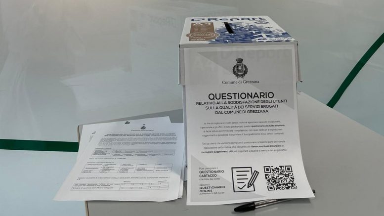 Tempi di attesa, qualità del servizio e dell’accoglienza, disposizione degli spazi comunali: sono alcune delle domande che si possono trovare all’interno del nuovo “Questionario relativo alla soddisfazione degli utenti sulla qualità dei servizi erogati” presente all’interno degli uffici del comune di Grezzana.