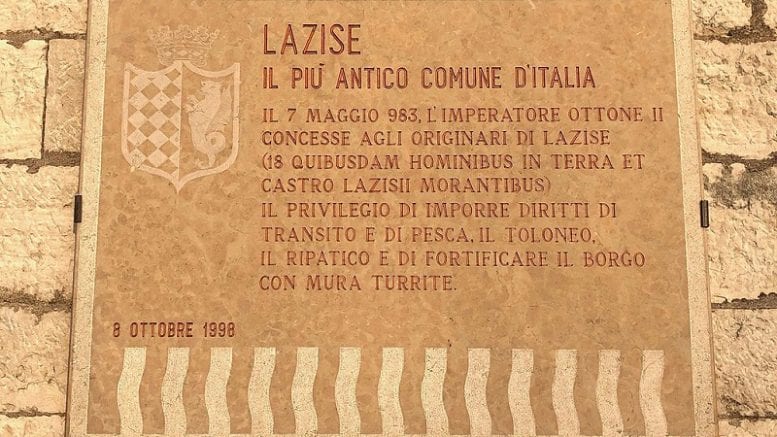 Nel 983 Lazise ottenne dall’imperatore del Sacro Romano Impero e re d’Italia Ottone II di Sassonia il privilegio di imporre diritti di transito e di pesca, tra i quali il teloneo, un dazio romano che colpiva l’entrata e la circolazione di prodotti e merci di consumo, e il ripatico, un antico tributo feudale corrisposto per poter disporre della riva del lago per attraversarlo, approdarvi o sostarvi. Oltre ad un’ampia autonomia commerciale, l’imperatore ottoniano concesse al borgo il diritto di fortificarsi, rendendo di fatto Lazise il primo comune libero d’Italia.