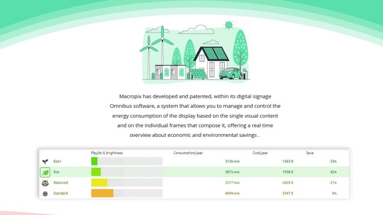 L’aggiornamento e il monitoraggio dei contenuti avvengono in tempo reale, consentendo una maggiore flessibilità e reattività nelle strategie di Digital Signage. OMNIBUS contribuisce anche alla riduzione del consumo energetico e dei costi operativi, grazie a un sistema intelligente di ottimizzazione. Progettato da MacroPiX, questo software trasforma ogni installazione in un potente strumento di comunicazione, portando la gestione dei display digitali a un livello superiore.