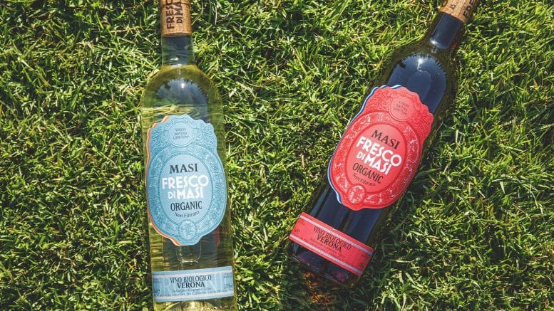 Masi Agricola lancia sui mercati internazionali Fresco di Masi, due vini biologici, un bianco e un rosso Verona Igt, organici e non filtrati. Parola d’ordine sostenibilità prima di tutto, tanto da riportare sull’etichetta una citazione dalle Georgiche di Publio Virgilio Marone: “Vinum natura genitum”. Le uve sono vendemmiate subito dopo la raccolta, senza lieviti aggiunti, senza appassimenti, e il vino senza passaggio in legno viene fatto decantare ma senza nessuna filtrazione.