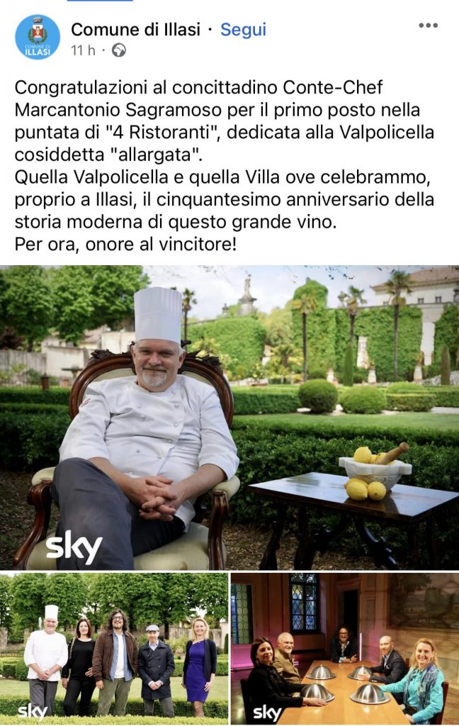 Al ristorante Le Cedrare, guidato da chef Marcantonio Carlo Michele Ugo Sagramoso, va quindi il titolo di miglior ristorante e il premio economico di 5mila euro da poter investire nella propria attività. Nella puntata dedicata alla Valpolicella “allargata”, Le Cedrare ha sbaragliato la concorrenza: Martina del Ristorante Enoteca Bacco d’Oro di Mezzane di Sotto, Judy del Groto De Corgnan di Sant’Ambrogio di Valpolicella e Michele del Posta Vecia di Colognola ai Colli.