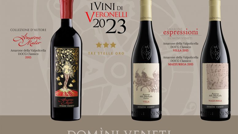Tre Stelle Oro Veronelli, record per i vini della Cantina Valpolicella Negrar. Venerdì 18 novembre scorso il Seminario Permanente Luigi Veronelli ha presentato a Caravino (TO) la Guida Oro I Vini di Veronelli 2023 e, tra i 436 vini insigniti con le “Tre Stelle Oro”, massimo riconoscimento della guida, ne figurano tre della linea premium Domìnì Veneti di Cantina Valpolicella Negrar, che risulta essere l’unica cantina in Veneto a ricevere tre riconoscimenti.