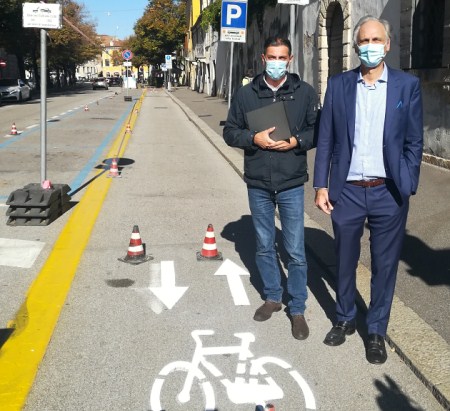 Questa mattina gli operai erano al lavoro per ‘ricolorare’ le strisce che separano le corsie delle auto da quella delle bici. Di un giallo acceso, come prevede il Codice della Strada, che si ravviverà con l’arrivo del buio. Un prodotto d’avanguardia che, se funzionale alla sicurezza cittadina, potrà essere applicato per rifare anche il resto della segnaletica orizzontale di ciclabili e attraversamenti pedonali.