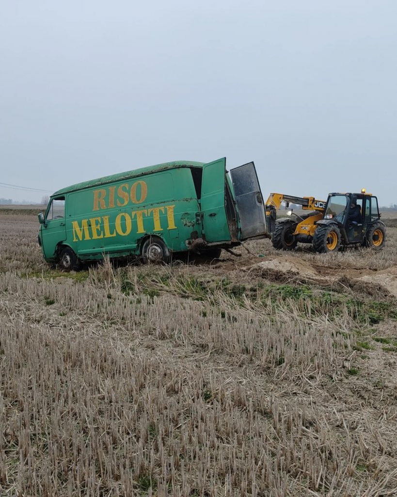 Rimosso dalla risaia il furgone della riseria Melotti.