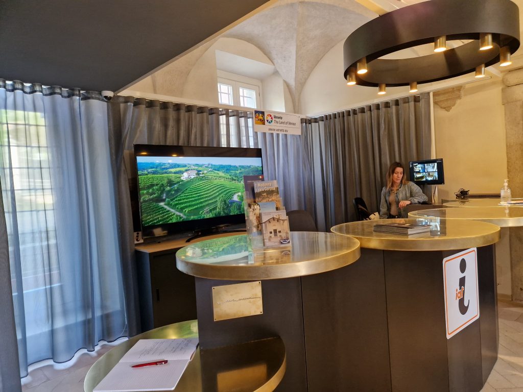 Infine, quello di Torri del Benaco Benaco si affaccia sul parcheggio grande del borgo, a metà del lago di Garda. Esattamente di fronte all’ufficio, c’è la fermata del traghetto che attraversa il lago, tratto Torri-Maderno. I turisti che arrivano a Torri sono per lo più appassionati di montagna e di trekking. Tra i diversi percorsi quello più importante è sicuramente la passeggiata al Ponte Tibetano che si trova nel piccolo borgo di Crero. L’ufficio offre un’esperienza immersiva del territorio con visori e ospita la prima stazione di ricarica per cellulari con power bank.