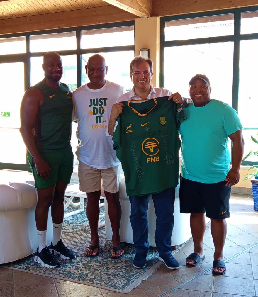 Alla fine il presidente dei sudafricani ha voluto ringraziare personalmente Nicola Vladimiro Ciccarelli, presidente di Swadeshi Hotels, per l’ospitalità ricevuta e la cura riservata alla squadra. “Questa esperienza rientra tra le iniziative messe in campo da Swadeshi per avvicinare il mondo dello sport – ha dichiarato Ciccarelli –. Un settore che per noi rappresenta un asse strategico, in particolare per la struttura sul Garda. Il dono di una maglia ufficiale e di una cravatta sociale, consegnatoci dal presidente e dal capitano degli Springbok, è un riconoscimento che mi ha emozionato e che conserverò con grande orgoglio. Un ringraziamento speciale va fatto al direttore, allo chef e a tutto lo staff dell’Eurocongressi Hotel, che ha svolto un lavoro straordinario”.