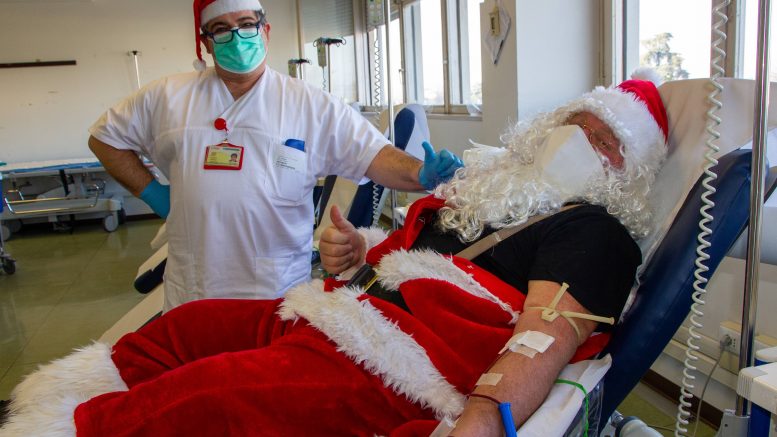 Sul lettino del Centro trasfusionale dell’ospedale di Legnago, per donare il suo sangue, si è steso nientemeno che Babbo Natale. Senza scomporsi, si è sfilato la giacchetta rossa e ha teso il braccio.