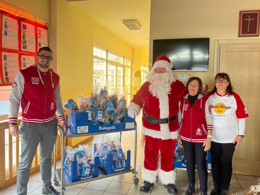 È stata una donazione davvero speciale, quella di Mauro Cristofoli, 54 anni, iscritto alla sezione Fidas Verona di Isola Rizza, il paese in cui vive. Da cinque anni, sotto le feste, sveste i panni dell’autista di autotreno, la sua vera professione, per indossare quelli di Babbo Natale: è lui infatti a consegnare i pandorini dei donatori di sangue ai bimbi della scuola dell’infanzia “Giacinto Bonanome”.
