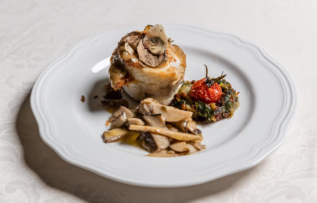 Celebra il trionfo del foliage e l’arrivo dell’autunno con un risotto ai funghi porcini, accompagnato da una crema vellutata di tartufo nero. Seguono i ravioli al nero di seppia ripieni di salmone, dove il burro al tartufo nero lega il piatto. A chiudere la serata, la torretta di filetto di vitella in manto San Daniele con funghi prataioli e una salsa al tartufo. Infine, il semifreddo ai frutti rossi profumati al lime con terra di pistacchi e crema agli agrumi chiude la cena.
