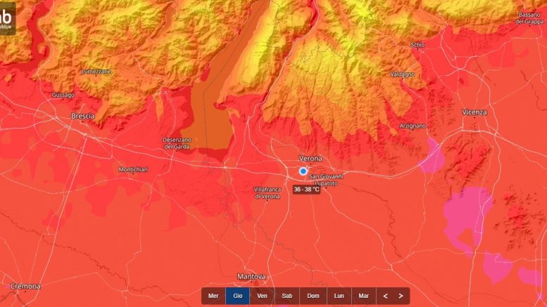 Ci siamo: la fine del grande caldo è vicina, anche a Verona e dintorni: ma poi occhio a temporali. Per giovedì e venerdì le previsioni su città e provincia dicono che non ci saranno variazioni di rilievo, con cieli sereni o poco nuvolosi da mattina a sera sia in pianura che in montagna. Le temperature massime saranno comprese tra 37 e 39 °C, le minime tra 21 e 24 °C in aperta campagna, tra 25 e 27 °C nel centro urbano di Verona. Insomma, ancora un paio di giorni di pazienza.