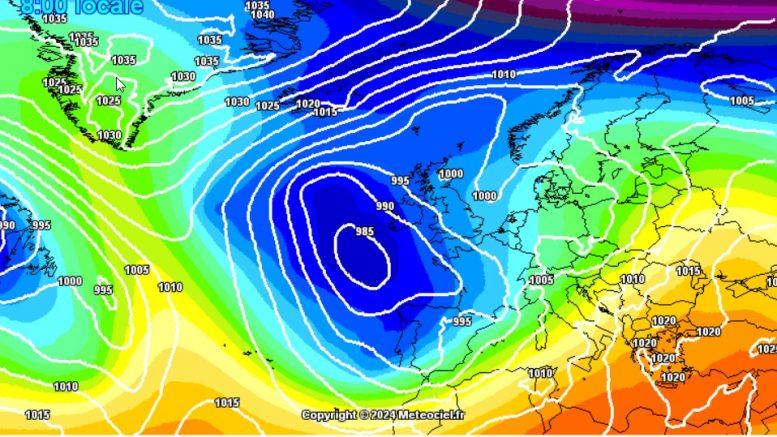 Una depressione molto profonda e ben strutturata, invia ancora impulsi perturbati anche sulla nostra Penisola mantenendo un tipo di tempo molto instabile con valori termici sotto la media.