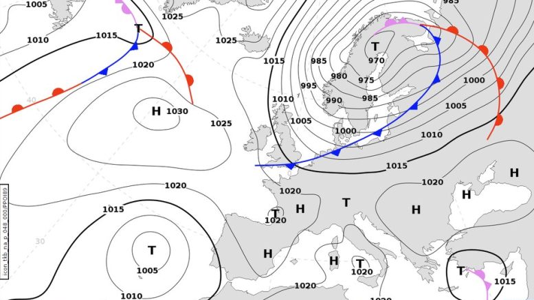 Un’area di alta pressione con centro sulle Isole Britanniche ci protegge anche se marginalmente e favorisce l’arrivo di correnti fredde da nord est.