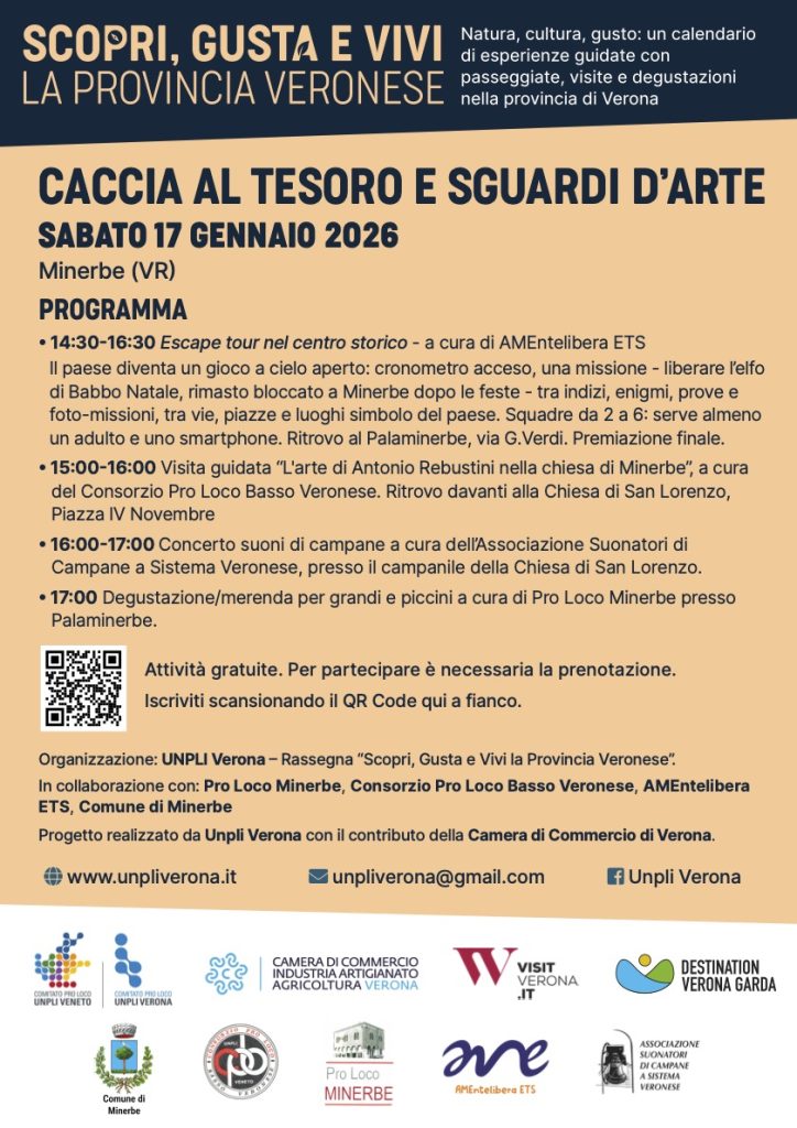 Sabato 17 gennaio 2026, la rassegna “Scopri, Gusta e Vivi la Provincia Veronese” fa tappa a Minerbe con un pomeriggio di esperienze gratuite. Queste sono state pensate per coinvolgere famiglie, bambini e visitatori di ogni età.