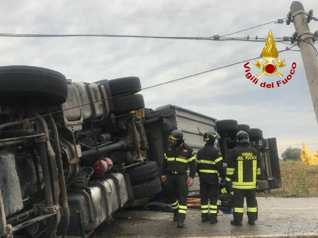 Un camion si è ribaltato nella mattina di oggi, venerdì 8, a Mozzecane, e ha perso carburante sulla carreggiata: strada chiusa, salvo l’autista. L’incidente è accaduto intorno alle 8.45 di oggi. I vigili del fuoco sono immediatamente intervenuti sulla SP3, via Mediana, dove è avvenuto il ribaltamento: un autoarticolato, con cella frigorifera adibita al trasporto di frutta e verdura, per cause ancora in fase di accertamento ha perso il controllo ribaltandosi su un fianco. Illeso l’autista che è stato comunque trasportato in ospedale, con l’elicottero di Verona Emergenza, per accertamenti.