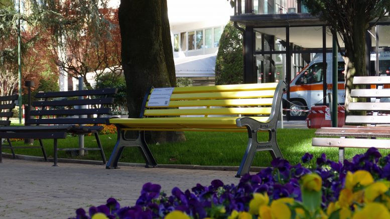 La panchina gialla simbolo dell’endometriosi inaugurata al Sacro Cuore di Negrar.