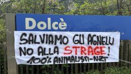 Striscione animalista contro la macellazione degli agnelli a Dolcè