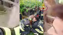 Capriolo si incastra tra le sbarre della cancellata dei vigili del fuoco – VIDEO