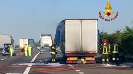 Peschiera, camion bisarca in fiamme su A4: il coraggio dell’autista. Le foto