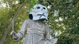 Statue mascherate con un teschio: è mistero anche a Verona. Ecco chi è stato
