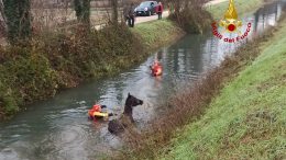 Cavalla finisce nel fosso pieno d’acqua, salvata dai vigili del fuoco con una mela
